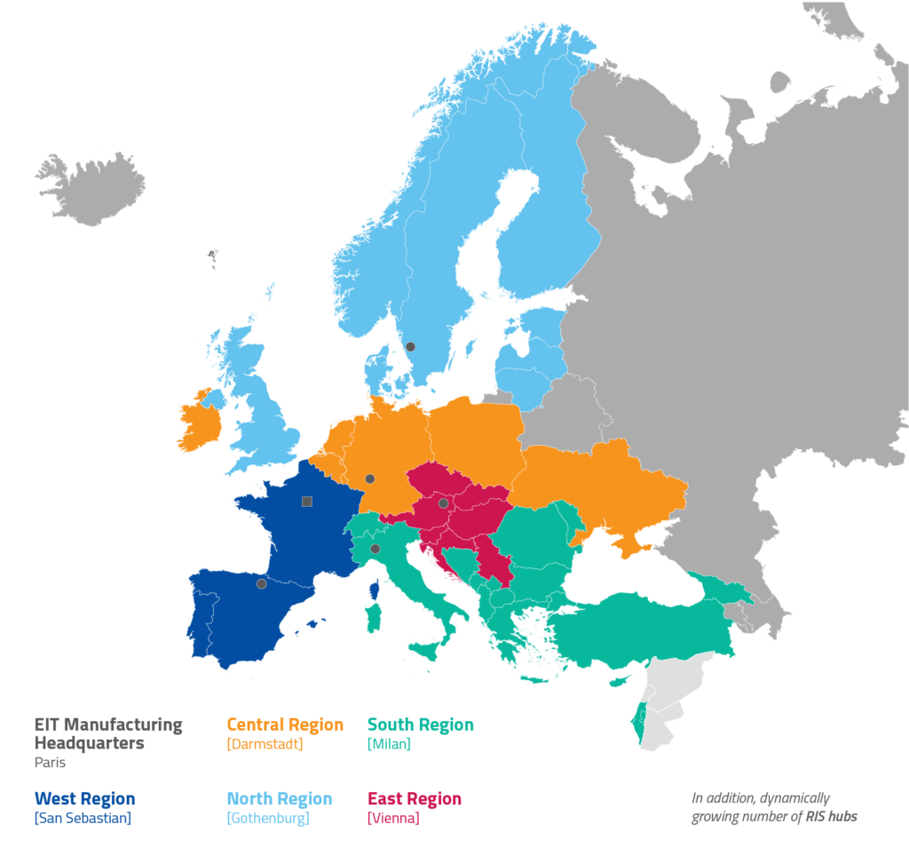 EIT Manufacturing Central gGmbH is located in Darmstadt, Germany. Central Region covers Germany, Belgium, the Netherlands, Luxemburg, Ireland, Poland and Ukraine, the latter two being classified as RIS countries.