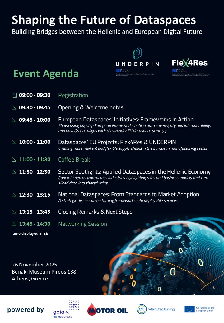 The event will spotlight two leading EU funded Projects, UNDERPIN and FLEX4RES, which are shaping the future of data-driven manufacturing in Europe: