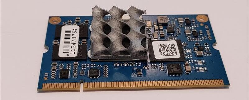 Electronic board with 3D-printed heatsink. Copyright (c) Kilometro Rosso
