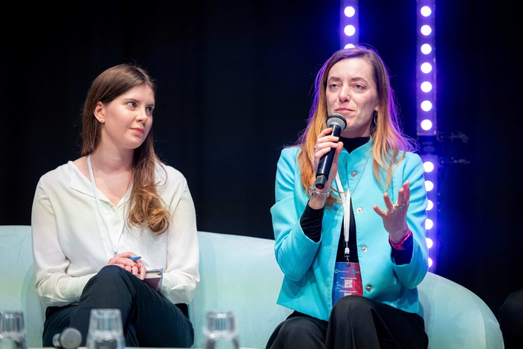 Elina Pihlajamaki and Jana Budkovskaja at InnoHive 2025. Photo credit (c) Xavier Lejeune