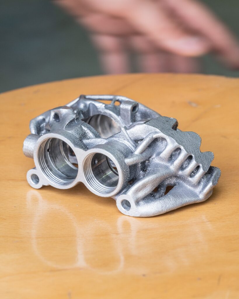Topologically optimised brake calliper in aluminium (3D printed). Copyright (c) Kilometro Rosso